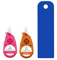 マーカーテープ本体は、ペンポーチでの持ち運びに便利なコンパクトサイズのドロップ形状。暗記用青シート(30×104mm)はしおりとして使用することもできます。テープ長は5mの使い切りタイプ。メーカー希望小売価格は418円(税込)です。