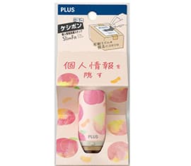 プラス株式会社は、2007年12月に個人情報保護スタンプ「ケシポン」を発売。特殊な配列をしたアルファベットパターンが効果的に文字を覆い隠すことで大切な情報を守り、これまで個人情報の保護に要していた煩わしさや手間を解消しました。この新しい発想が注目を集め、ご家庭・オフィスで大好評を博しました。