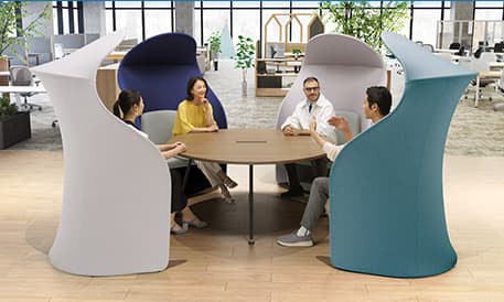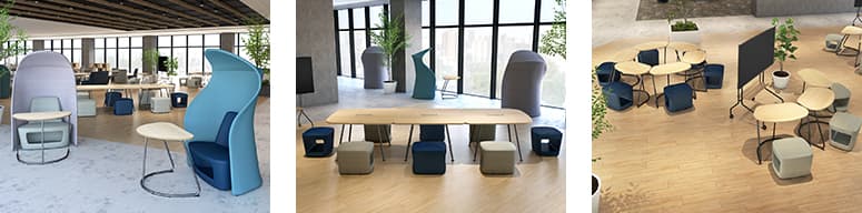 「Work Harbor」シリーズのアイテムを組み合わせることで、チームスペースやソロスペースなど多彩なレイアウトを実現します。