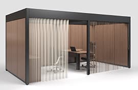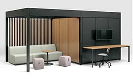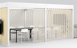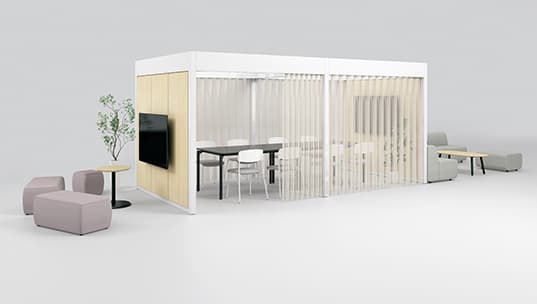 ベースフレームにオプションを組み合わせて、オープンなコミュニケーションスペースからエグゼクティブのためのソロブースまで、ニーズに合わせて空間を構築できます。