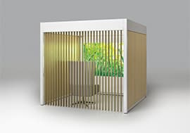 パネル、木製バーチカルブラインド、カーテンと3つのフレーム用オプションをラインアップ。空間内部のプライバシー度に応じて最適な遮へい感を選択できます。