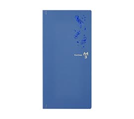 三つ折りにしたA4用紙がすっきり収まるA4×1/3サイズのノートです。マットネイビーの表紙は耐久性に優れた紙クロスを使用。中紙は目に優しいクリーム色で、万年筆のインクが裏抜け・裏移りしにくく、書き心地の良い上質紙を採用。糸かがり製本で、しっかり開きます。