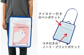 本体裏面には、ファスナー付きペンケースとプリントポケットを装備。メーカー希望小売価格(税抜)は、770円です。