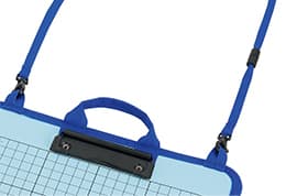 「安全パーツ付たんけんボード」は、小学校低学年を中心に、課外学習や生活科・理科・体育などの授業で使われる学習用のクリップボードで、本体の素材に発泡PPシートを採用することにより、軽量で水に強く、野外活動での使用に最適な仕様です。また、安全面にも配慮し、首や肩から下げて使用するストラップは、強く引っ張られると安全パーツのジョイント部分が外れる仕組みです。
