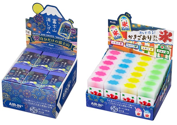 プラス株式会社(東京都港区 代表取締役社長 今泉忠久)は、“消す”ことを楽しみながら、自分だけの富士山を作ることができる「エアイン 富士山消しゴム」から、日本の夏祭りをテーマにした「エアイン 富士山消しゴム<限定>花火」と「エアイン 富士山消しゴム<限定>かき氷」を2025年5月15日に同時発売します。