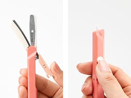 はさみ・開梱カッターともに、キャップの付け外しの手間や紛失の心配がなく、使いたい時に簡単かつ手早く使用できます。