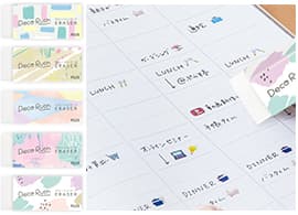 修正テープのようにテープを引くだけでデザイン柄が転写され、手帳や日記、ノート、カードなどを華やかに飾れるデコレーションテープ「デコラッシュ」。手帳ユーザーを中心とした幅広い世代から支持されています。