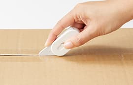段ボールの開梱から片付けまで、誰でも簡単にストレスなく使える開梱カッター。手のひらに収まる軽量・コンパクトサイズで、セラミック刃の高さを段ボールの厚さに合わせて短く固定した、開梱時に荷物の中身を傷つけにくい安心設計です※3。宛名ラベルやシールの端をめくるのに便利なラベルリムーバーを搭載したほか、マグネットを内蔵し、玄関ドアや冷蔵庫などに貼り付けて保管が可能です。裏面にはくぼみがあり、玄関のドアスコープに被せて、ドアスコープカバーとしても機能し、セキュリティを意識される方に最適です。