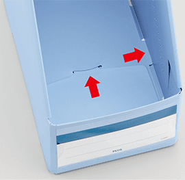 本体の底面にある2カ所のツメを差し込むだけで簡単に組み立てできます。クラス全員分のボックスファイルを組み立てる先生の負担を軽減します。