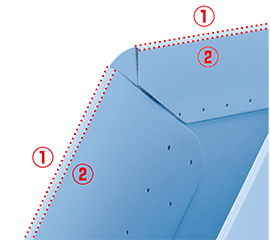 ボックス前面の内側に補強板を設けて、引っ張りや衝撃に強い二重構造を採用。ロッカーなどから出し入れする際に、前面を手でつかんでも裂けにくく、長くお使いいただけます。