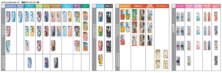 常に最適な刃の開き角度を保つ"ベルヌーイカーブ刃"※2を搭載することで、“根元から刃先まで軽い切れ味”を実現した「フィットカットカーブ」シリーズは、国内外から高い評価をいただき、2012年の発売以降、シリーズ累計5,000万本以上の売上を達成※3。“料理はさみ” “携帯はさみ”“開梱機能付きはさみ”など、用途に応じた幅広いラインアップを展開し、多くの方にご愛用いただいています。