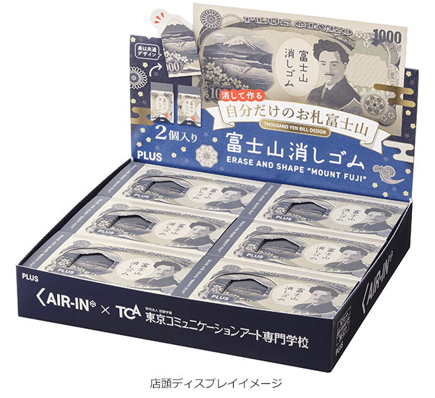 プラス株式会社(東京都港区 代表取締役社長 今泉忠久)は、“消す”ことを楽しみながら、自分だけの富士山を作ることができる「エアイン 富士山消しゴム」から、お札をイメージした小箱入りセット「エアイン 富士山消しゴム<限定>お札富士山」を「富士山の日※」に合わせて2026年2月23日に発売します。