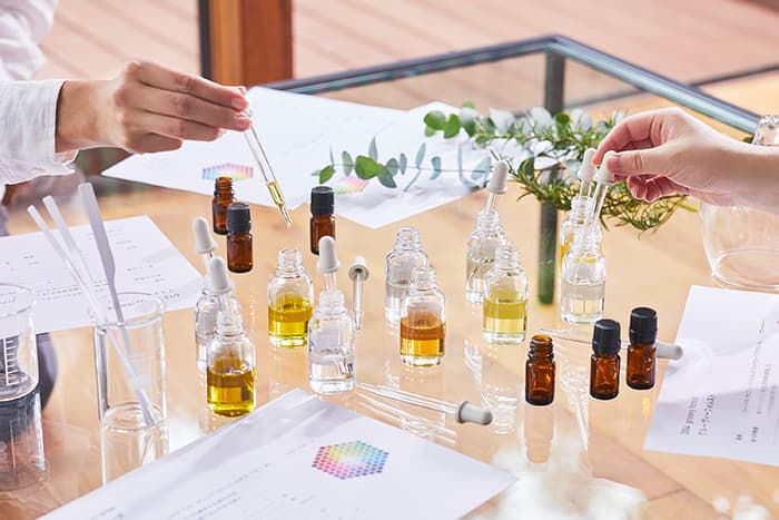使用するのは、草花や木々などの植物から抽出し100%天然の芳香成分(エッセンシャルオイル)のみ。