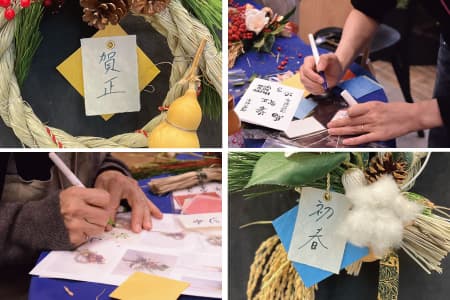 少し難しかったという声もありましたが、ベースのしめ縄の形に悩んだり、松や南天の配置を工夫したりと、同じものは二つとない、それぞれ個性あふれる素敵なお正月飾りを完成させてくださいました。