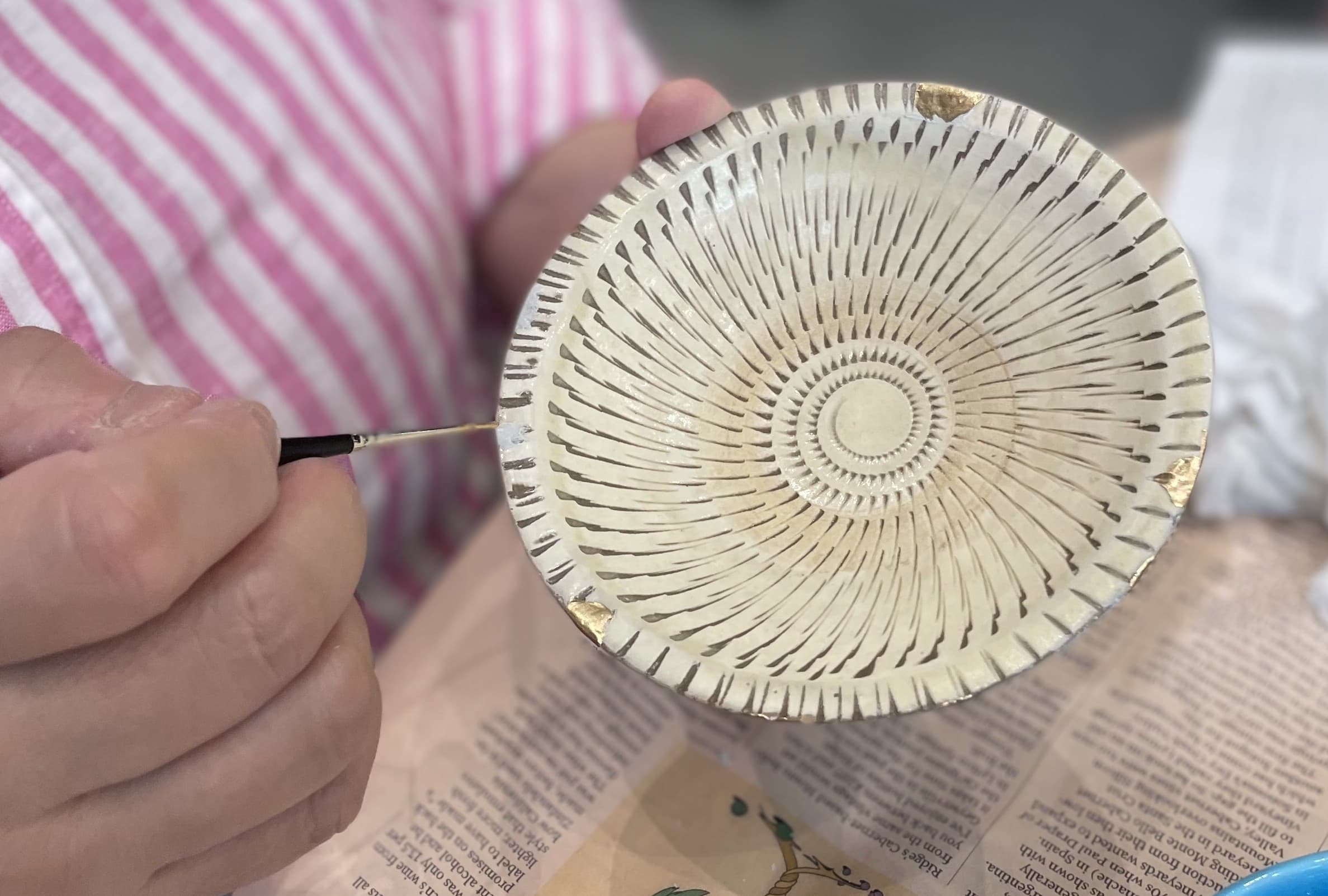 参加者の方々には、自身の壊れた(欠け、ヒビ)器をご持参いただき、金継ぎをしていただきました。