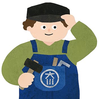 一般財団法人大川インテリア振興センター制作の絵本キャラクター、家具作りの匠“もっこうさん ”。