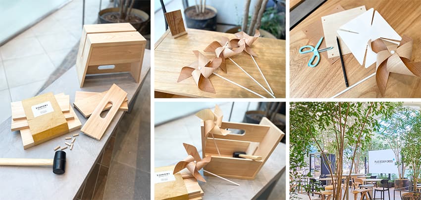 メイン会場では、もっこうさんへの弟子入り企画、国産材を使ってつくるツールボックスや、かざぐるまのワークショップも(有料)開催。イベントに参加いただいた方には、射的の的や文具のプレゼントなど特典をご用意していますので、ぜひもっこうさんに会いに、遊びにいらしてください。