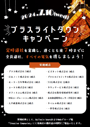 7月10日(水)、プラスグループ27拠点にて、「プラスライトダウンキャンペーン」を実施しました。
