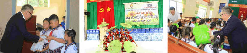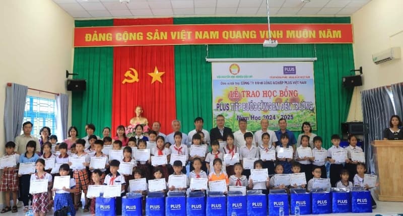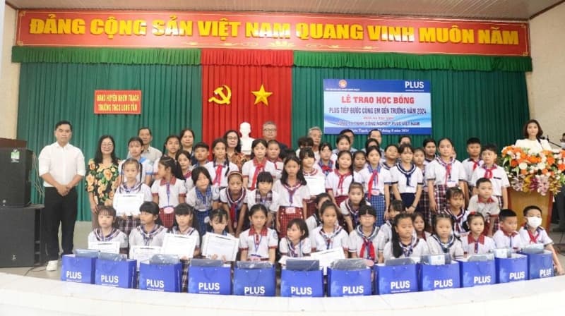 プラス株式会社は2013年にベトナムの小学生を対象とした奨学金制度「PLUS Vietnam Scholarship(プラス ベトナム スカラーシップ)」を設立しました。ベトナム工場(PLUS VIETNAM INDUSTRIAL CO., LTD./ベトナム:ドンナイ省、以下PVI)は、2024年度も100名の奨学生を決定、8月22日にNhon Trach(ニョンチャック)県、29日にCam My(カムミー)県にて奨学金授与式を行いました。