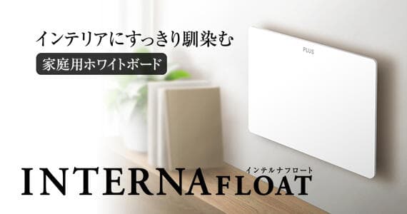 リビングやキッチンなどのインテリアにすっきり馴染む、小型・軽量・フチなしのスタイリッシュなデザイン!プラスらしいデザインと機能性にこだわった家庭用ホワイトボード「インテルナフロート」